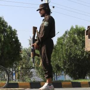 9月5日,阿富汗安全人員在喀布爾爆炸現場附近警戒。