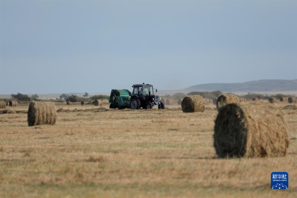 哈薩克斯坦北部地區9月進入牧草集中收割的季節,成片的牧草被牧民收割、曬干并捆成草垛,以備牲畜在冬季食用。新華社發(奧斯帕諾夫攝)