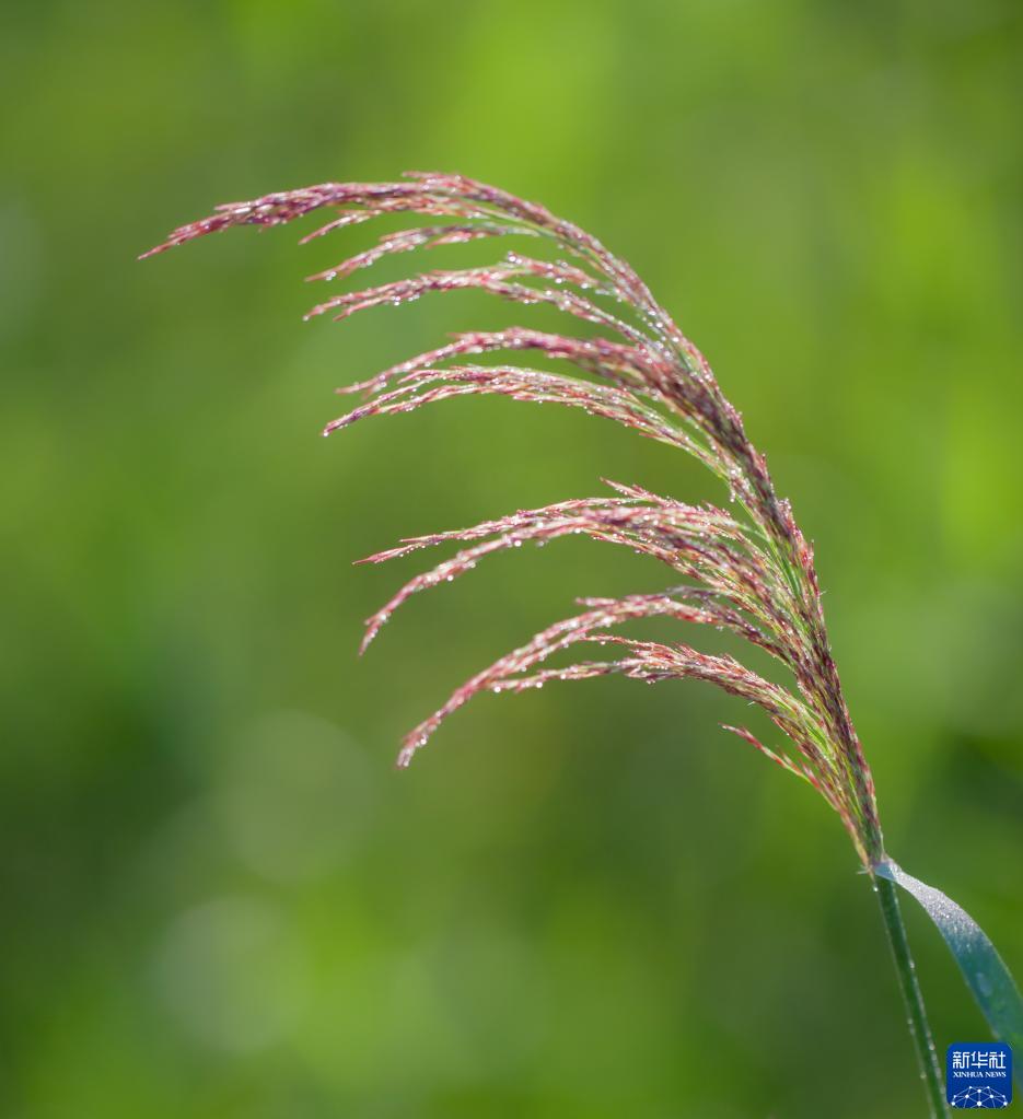 9月4日,在山東省淄博市高青縣,蘆葦上結(jié)滿露珠。
