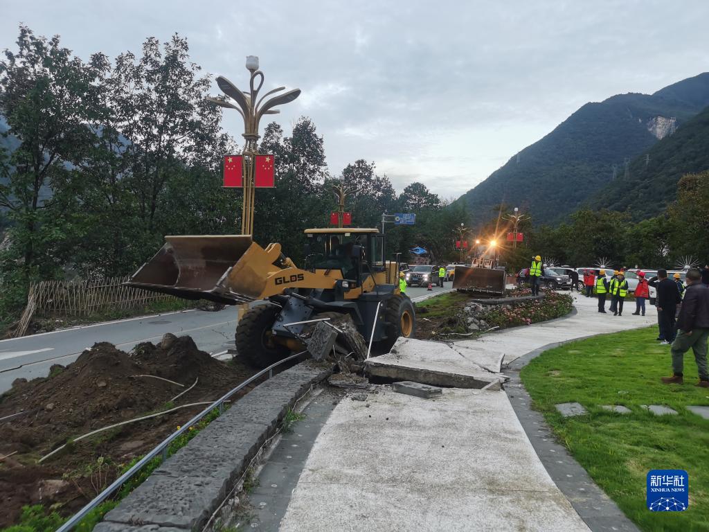 9月6日上午,在省道S434線磨西鎮至金光村受阻點,工程機械在搶通便道。