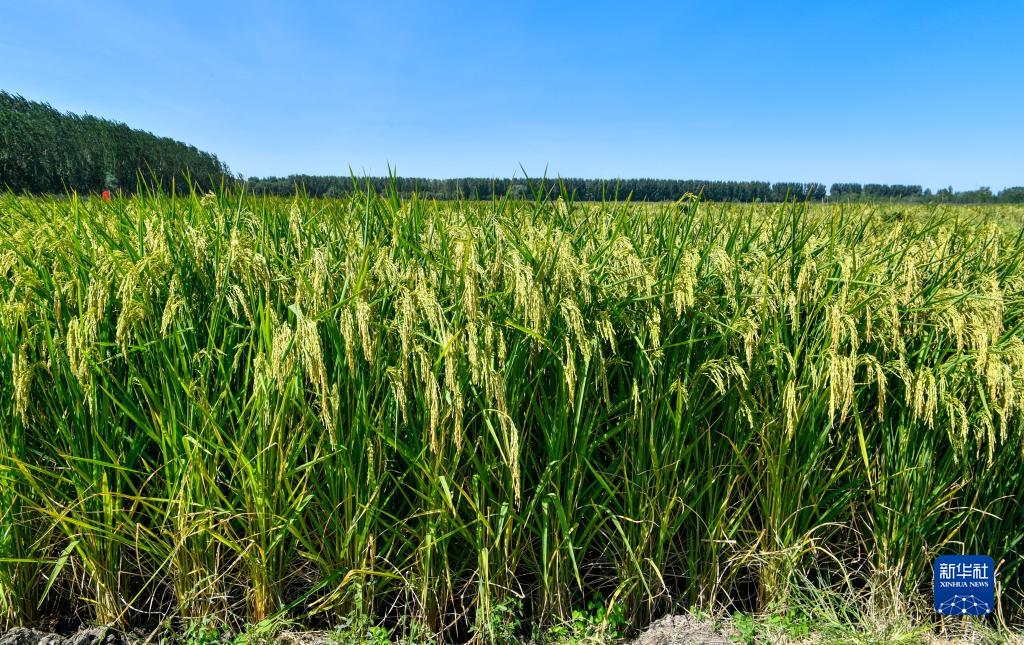 近日,天津市寧河區東棘坨鎮東白莊村種植的百畝“巨型稻”試種田長勢喜人,已進入灌漿期。