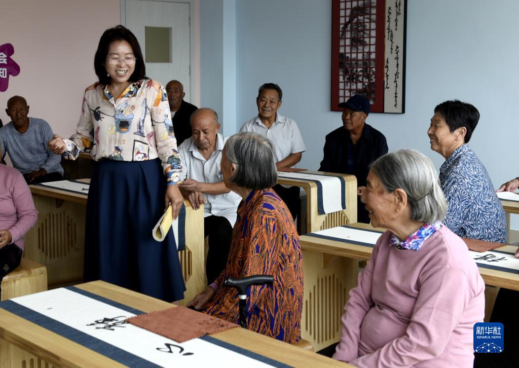 9月6日,在山東省濱州市沾化區康教醫養綜合服務中心國學堂,院長高子美在為老人講解疫情防控知識。