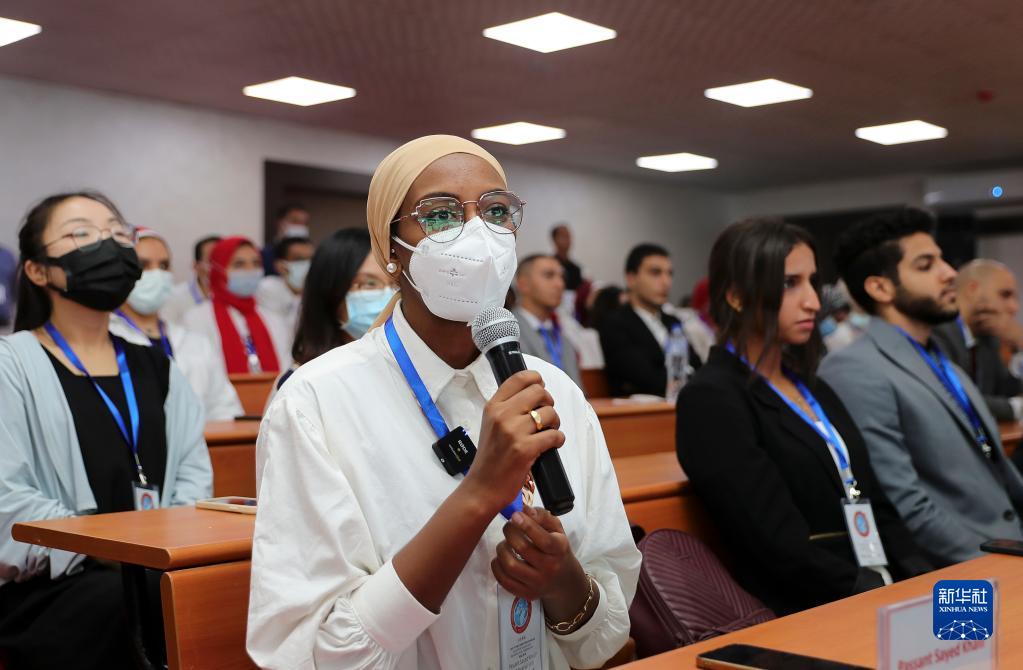 9月6日,在埃及開羅的“天宮對話”活動埃及分會場,一名開羅大學青年漢語老師向中國首位女航天員劉洋提問。