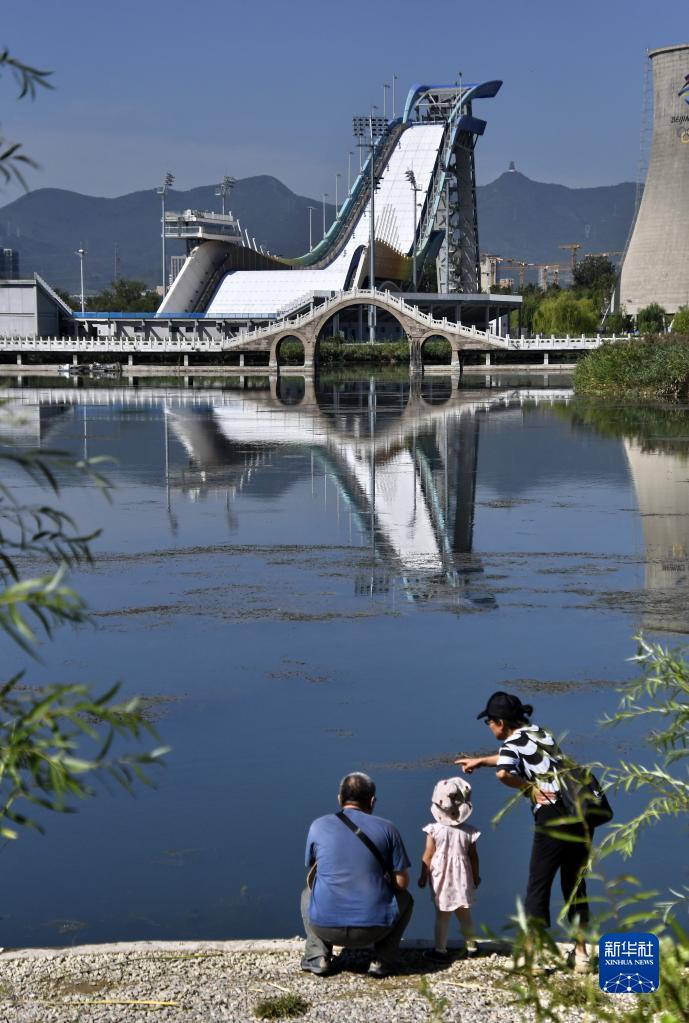 9月8日,市民在首鋼老園區群明湖畔休閑。群明湖具備集雨節水功能,同時可供市民休閑。