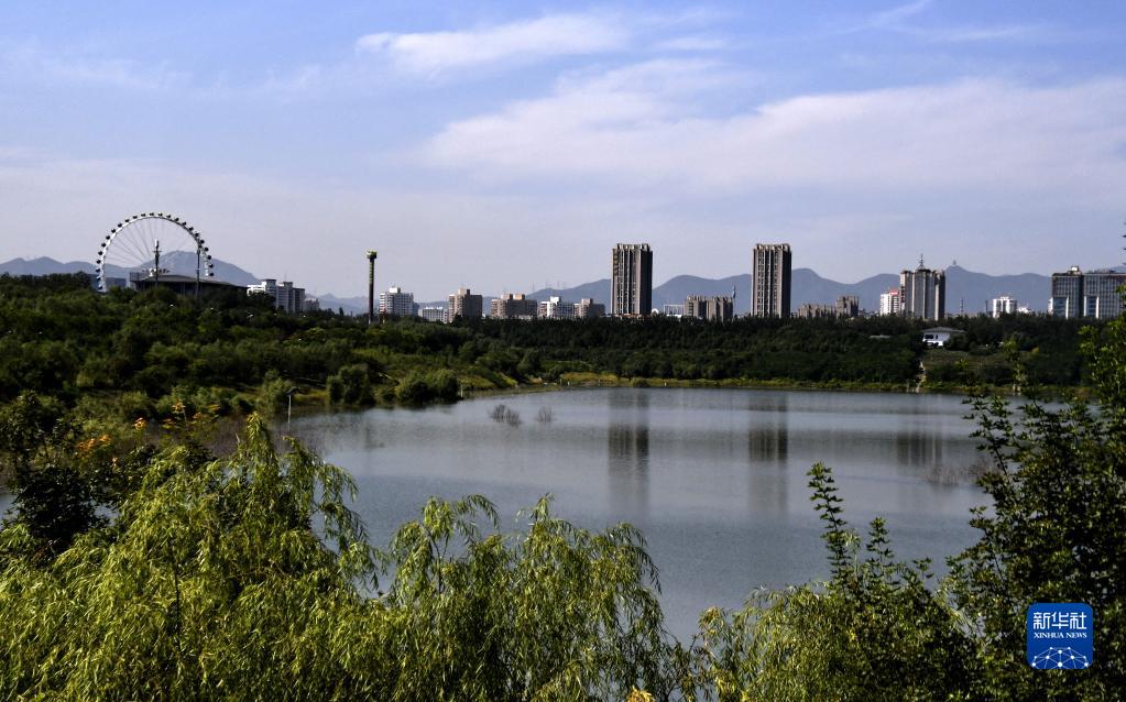 這是利用阜石路廢棄的大型砂石坑建設的西郊雨洪調蓄工程,蓄水量可達680萬立方米(9月8日攝)。