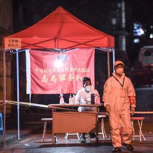 9月7日夜,志愿者在貴陽市云巖區一居民小區疫情防控點值守。