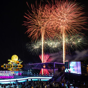 9月8日在亮燈儀式上拍攝的《月是故鄉明》主題煙火秀。