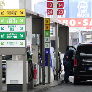 9月8日,一名男子在德國柏林的加油站給汽車加油。