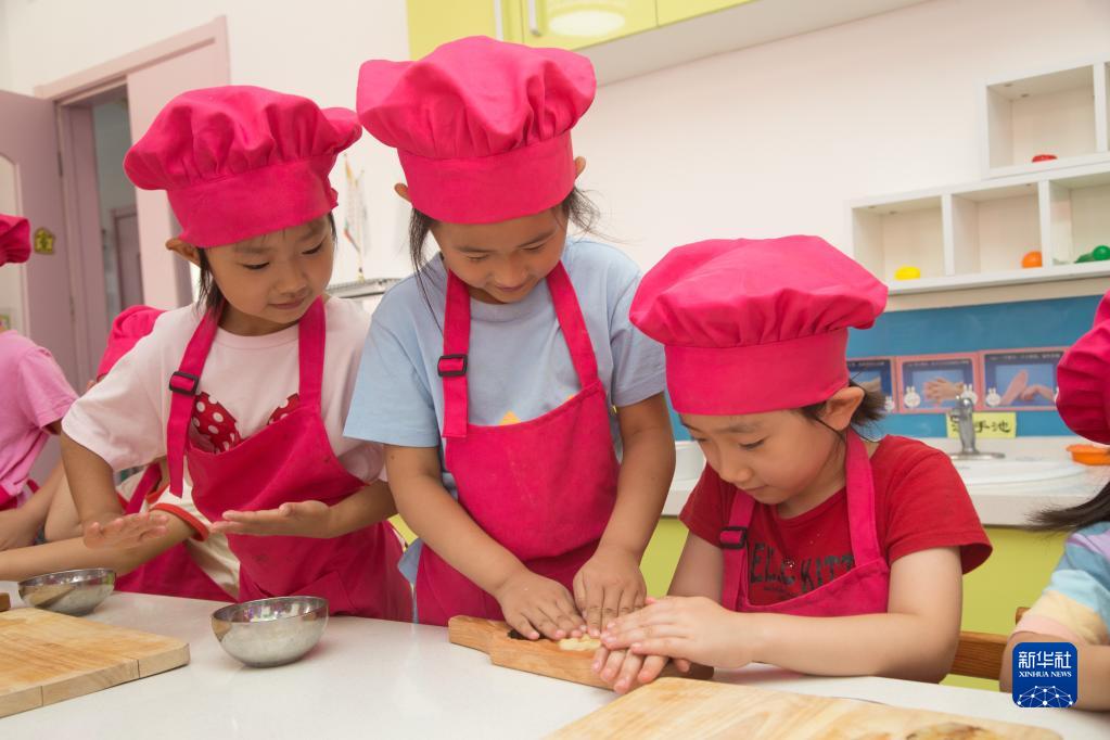 9月8日,北京門頭溝妙峰山民族學(xué)校附屬幼兒園的孩子們在制作月餅。