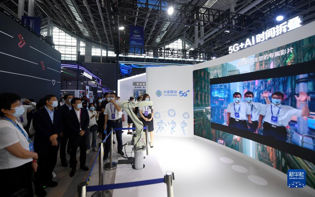 參觀者在河北省石家莊市舉辦的2021中國國際數字經濟博覽會上參觀(2021年9月6日攝)。
