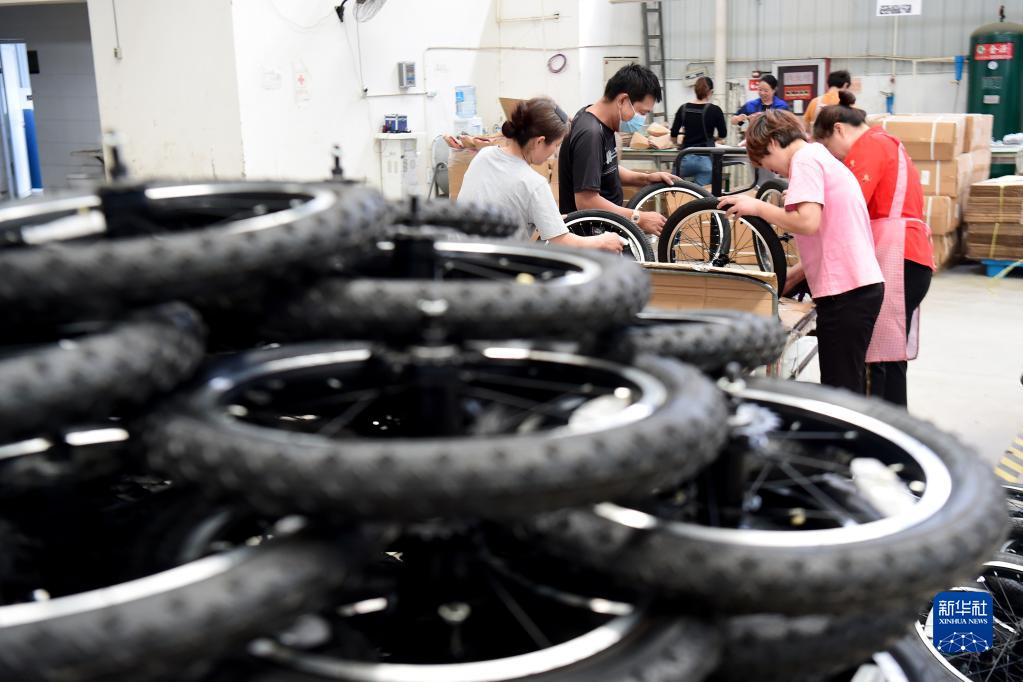 連日來,在安徽省蚌埠市五河縣自行車產業園,企業開足馬力加緊生產,保障外貿訂單按進度完成。據介紹,五河縣自行車產業園創建于2016年,占地面積327畝,目前已經入駐18家自行車上下游企業,涵蓋自行車、鋰電自行車、電動滑板車等整車組裝以及零配件生產,產品主要出口法國、意大利等地,年出口額超3000萬美元。