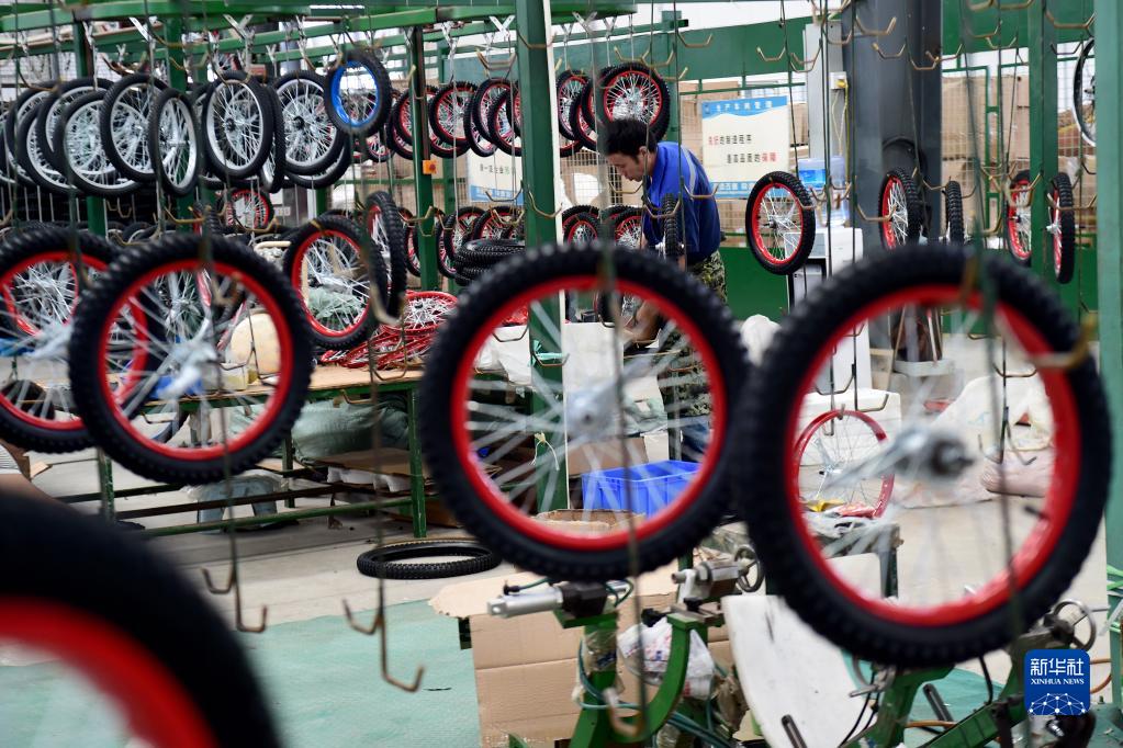 連日來,在安徽省蚌埠市五河縣自行車產業園,企業開足馬力加緊生產,保障外貿訂單按進度完成。據介紹,五河縣自行車產業園創建于2016年,占地面積327畝,目前已經入駐18家自行車上下游企業,涵蓋自行車、鋰電自行車、電動滑板車等整車組裝以及零配件生產,產品主要出口法國、意大利等地,年出口額超3000萬美元。