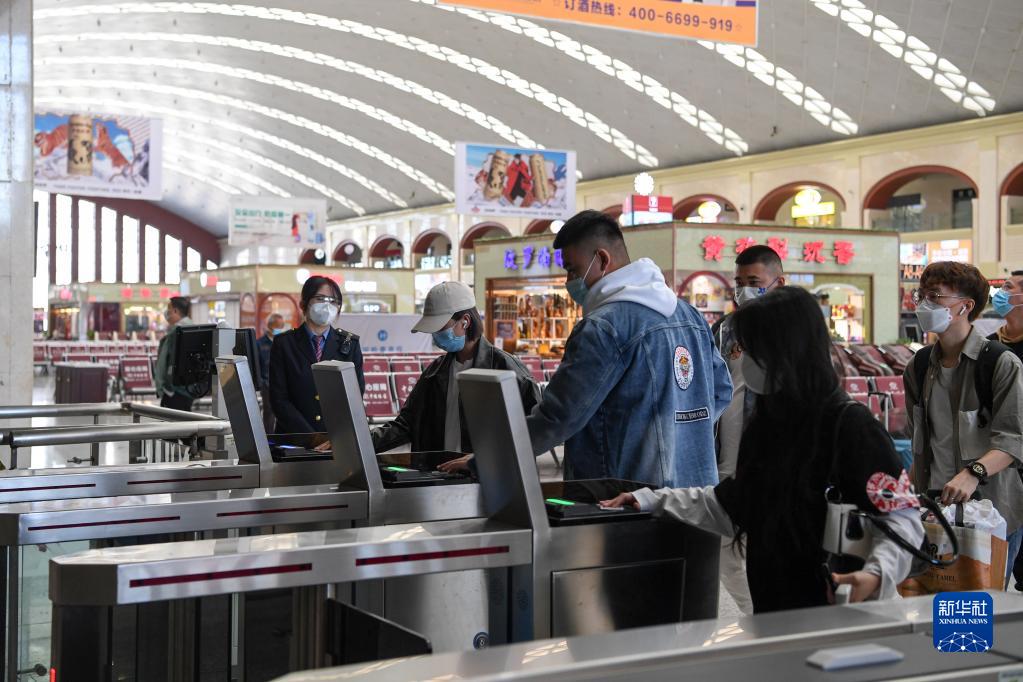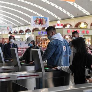 9月9日,在哈爾濱西站,旅客通過閘機進站乘車。