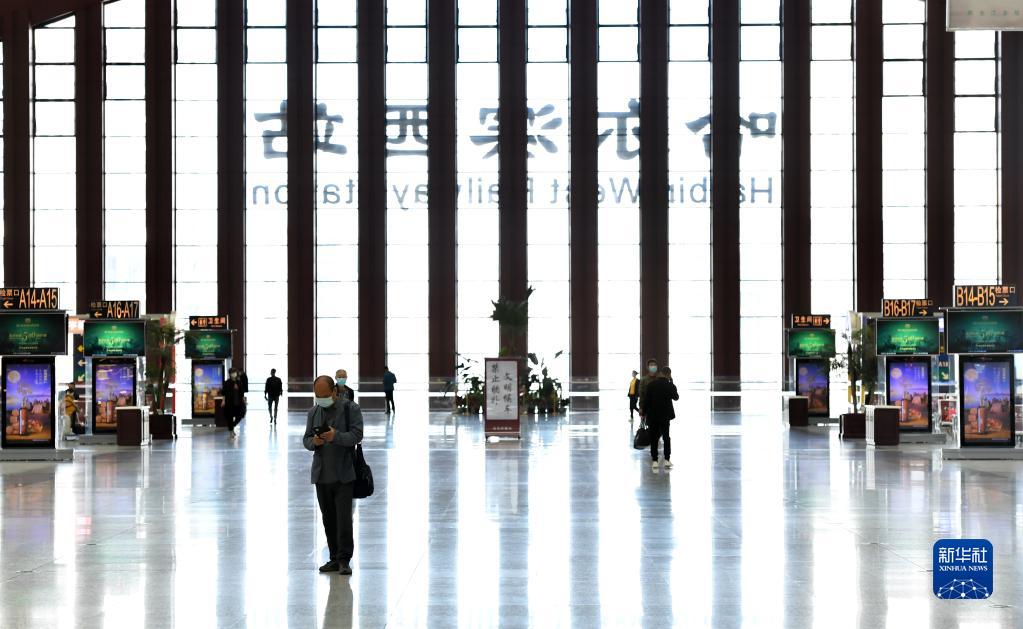9月9日,在哈爾濱西站,旅客在大廳候車等待。