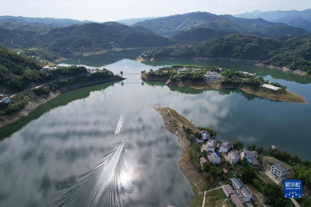 安康市漢濱區(qū)境內的漢江瀛湖景色(9月6日攝,無人機照片)。