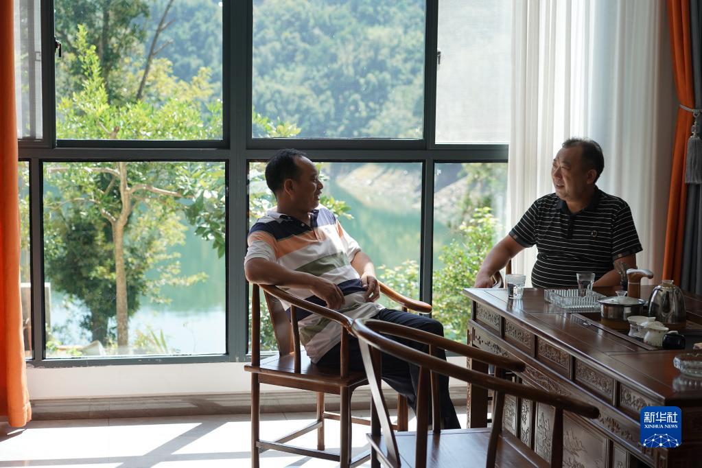 游客在安康市漢濱區(qū)漢江瀛湖邊的一家民宿內(nèi)休息聊天(9月6日攝)。