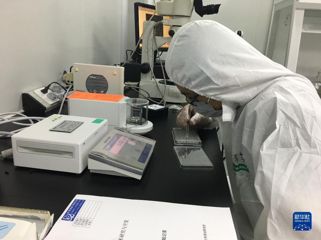 中核集團核工業北京地質研究院研究人員在稱量月壤(2021年9月攝)。新華社發(中核集團核工業北京地質研究院供圖)