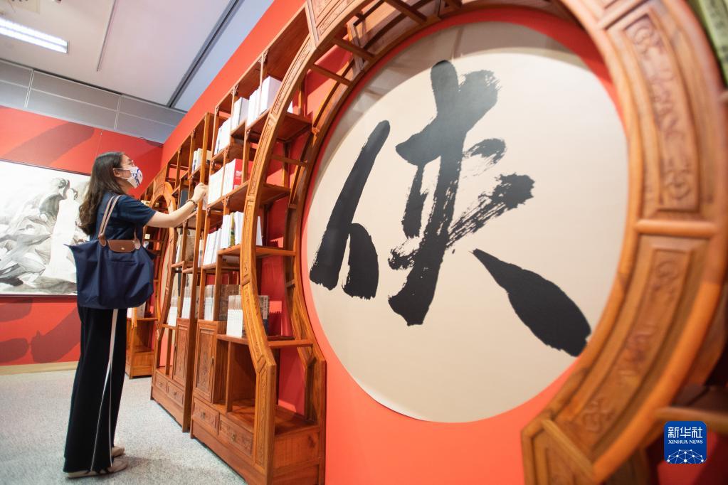 9月9日,參觀者觀看展出的金庸小說作品。