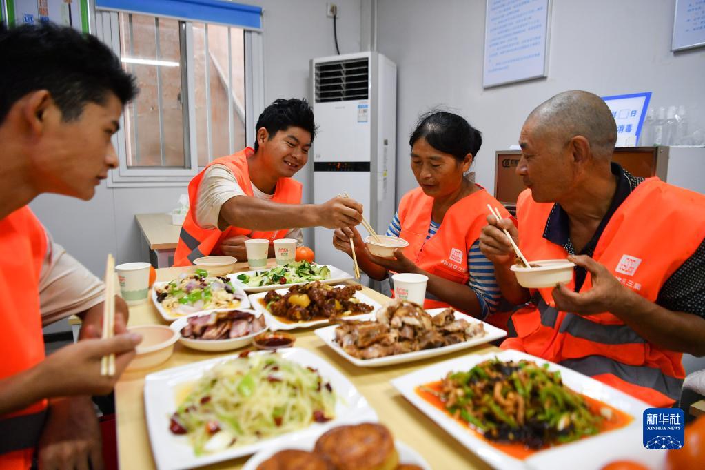 9月9日,張志軍一家在工地食堂品嘗建設方為他們準備的團圓飯。