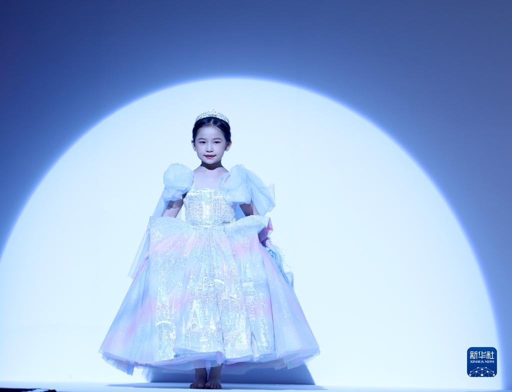 9月9日,小模特在北京中國國際時裝周(2023春夏系列)舉行的“AMORCODE”童裝發布會上展示童裝。