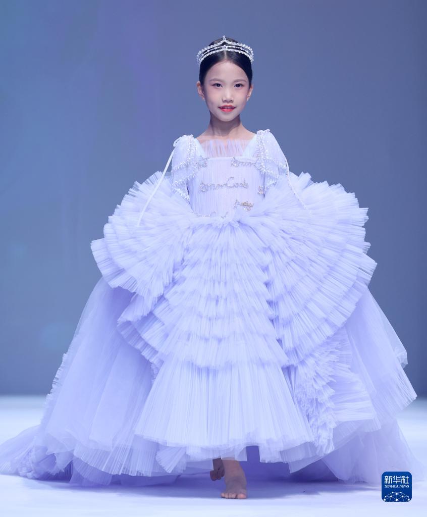 9月9日,小模特在北京中國國際時裝周(2023春夏系列)舉行的“AMORCODE”童裝發(fā)布會上展示童裝。