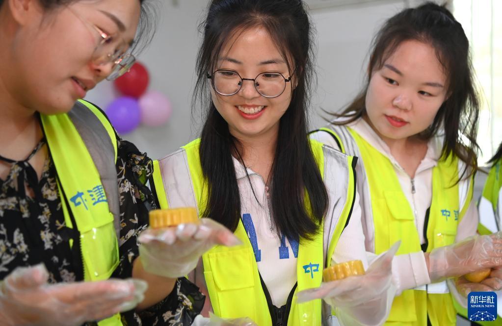9月9日,在中建二局陜西分公司咸陽高鐵新城項目部,建設者在制作月餅。