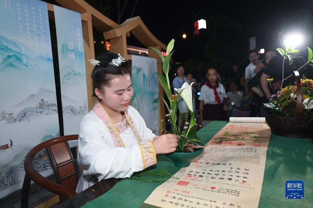壽昌古鎮“宋韻中秋”活動現場展示的傳統插花(9月9日攝)。