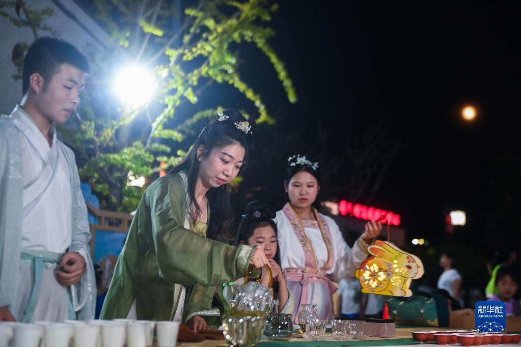 9月9日,浙江省建德市壽昌古鎮舉辦以“宋韻中秋”為主題的游園會,市民游客觀賞體驗茶道、古琴、插花、投壺、踢毽子等傳統文化活動,迎接中秋佳節的到來。