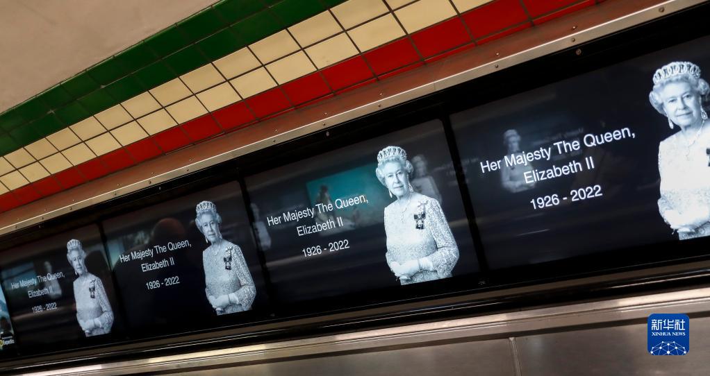 這是9月9日在英國倫敦的地鐵站內拍攝的悼念英國女王伊麗莎白二世的圖像。