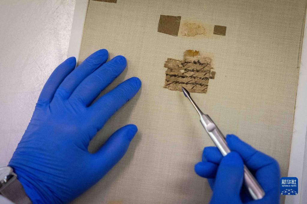 9月7日,在耶路撒冷,研究人員展示記錄古希伯來語信息的莎草紙信件碎片。