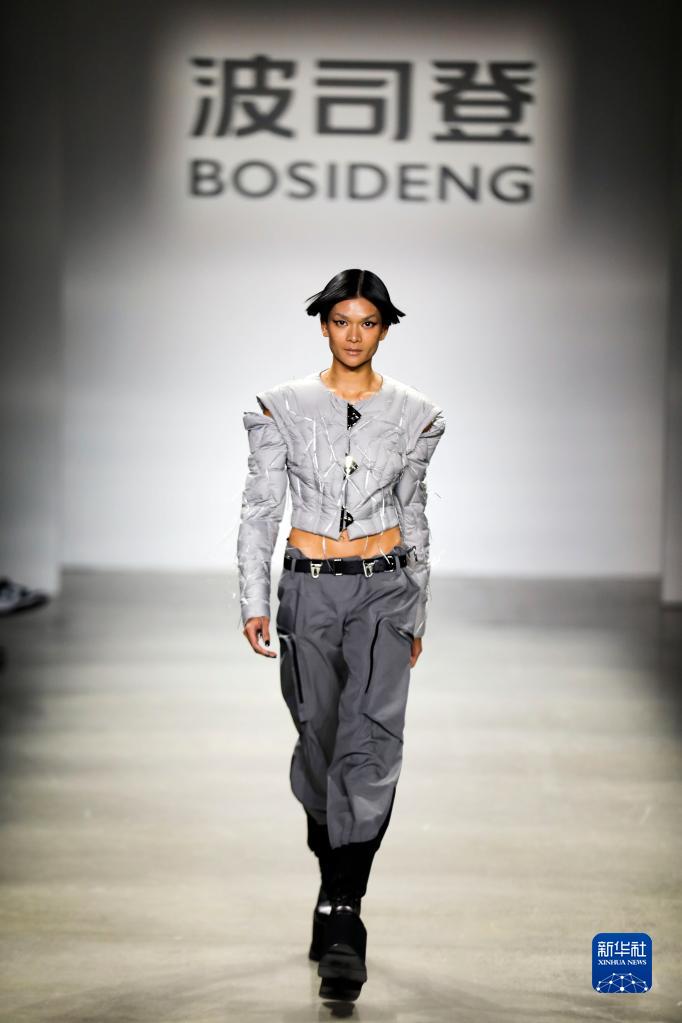 9月9日,模特在美國紐約舉行的紐約時裝周上展示波司登品牌2023春夏系列服飾。