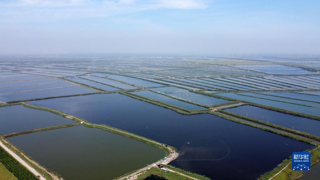 這是9月9日拍攝的位于天津市濱海新區北塘街的蝦塘(無人機照片)。