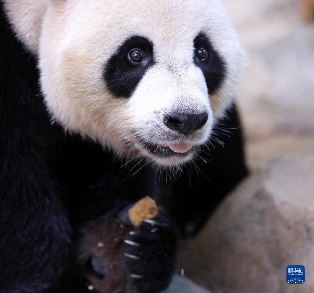 9月9日,在廣州長隆野生動物世界,大熊貓“帥帥”品嘗特制“月餅”。