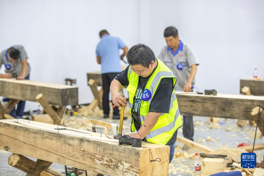 9月9日,參賽人員在進行木作文物修復技能比賽。