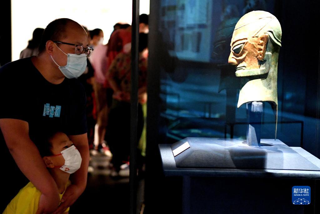 9月10日,在鄭州博物館文翰街館,市民參觀“繁星盈天——中國百年百大考古發現展”。