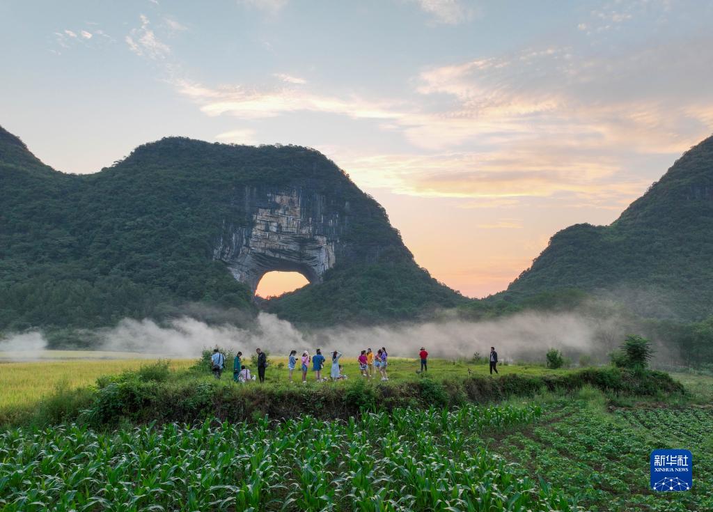 9月10日,游客在湖南省永州市道縣月巖風景區拍照游玩(無人機照片)。
