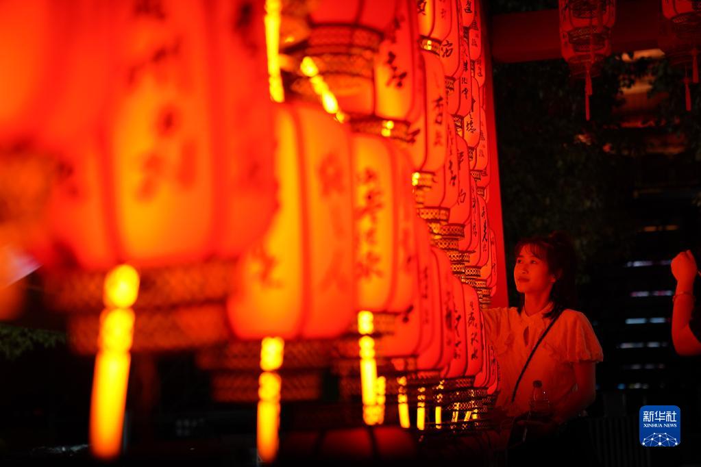 9月10日,市民在江西南昌市東湖區滕王閣景區內賞燈。