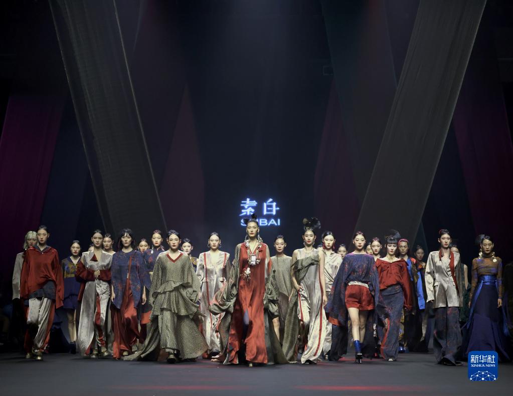 當(dāng)日,“素白·馬乖”時裝發(fā)布會在北京中國國際時裝周(2023春夏系列)舉行。設(shè)計師推出50套用傳統(tǒng)“天然桑蠶絲織物”、具有古舊香云紗質(zhì)感的環(huán)保面料等制作的時裝。
