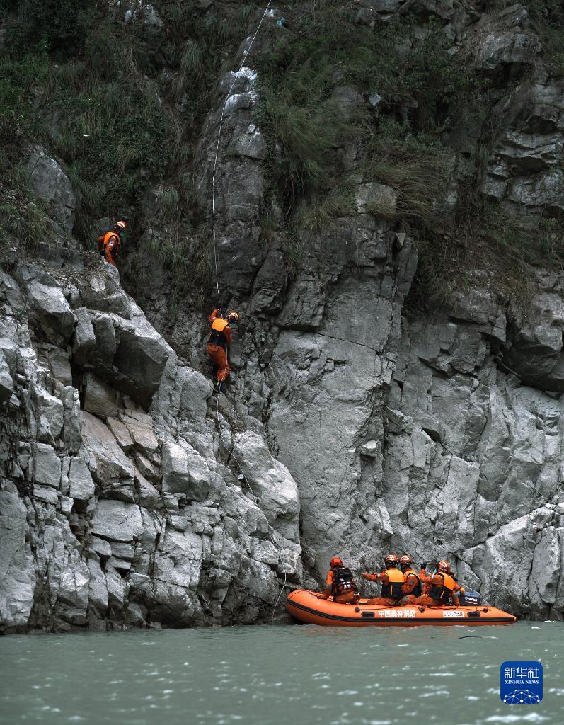 9月9日,四川省森林消防總隊消防員繼續在瀘定縣得妥鎮救援。