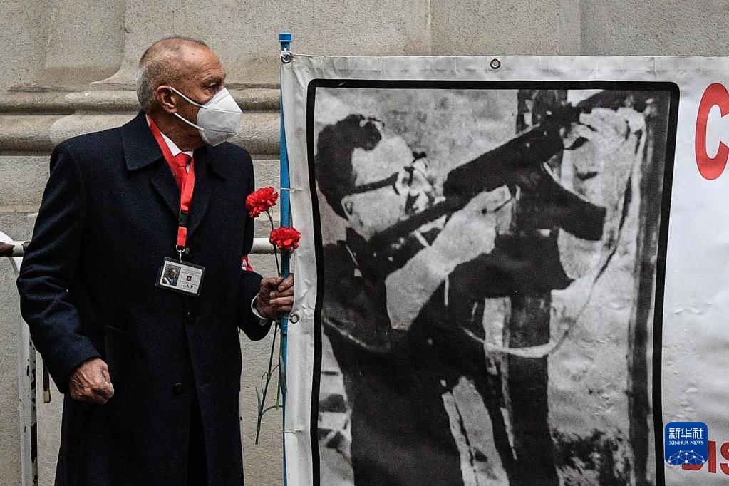 9月11日,在智利首都圣地亞哥,一名男士手執紅色康乃馨紀念前總統阿連德遇難49周年。