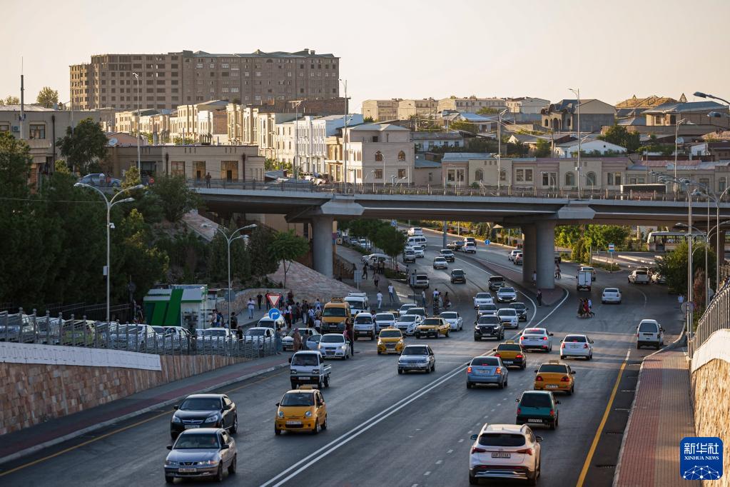 9月3日,在烏茲別克斯坦撒馬爾罕,車輛行駛在道路上。