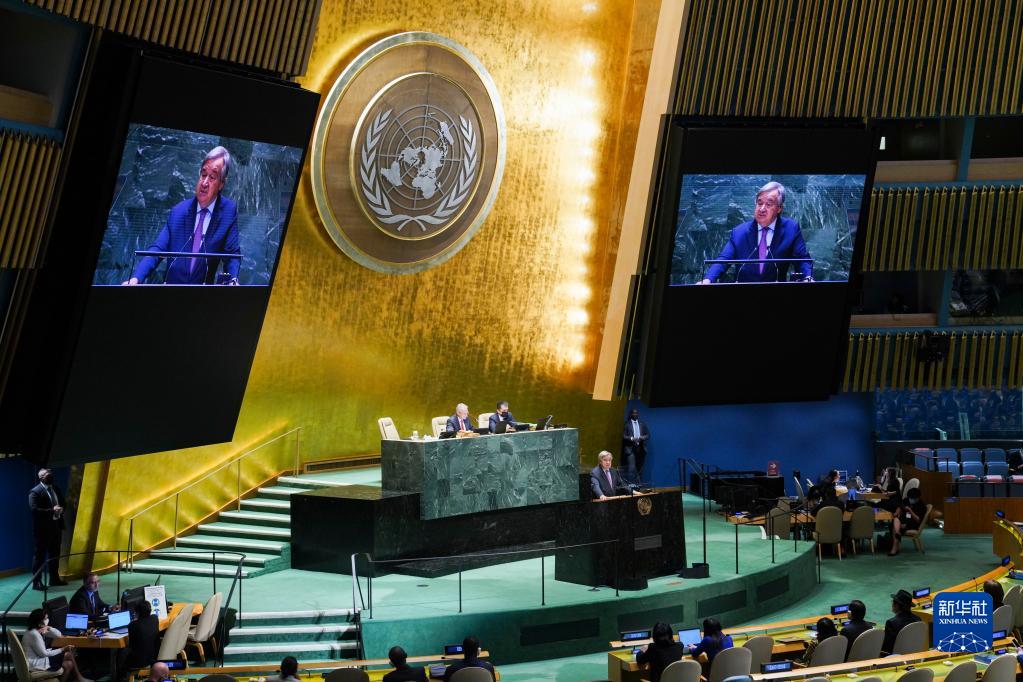 9月13日,在位于紐約的聯(lián)合國(guó)總部,聯(lián)合國(guó)秘書長(zhǎng)古特雷斯在第77屆聯(lián)合國(guó)大會(huì)第一次全會(huì)上致辭。