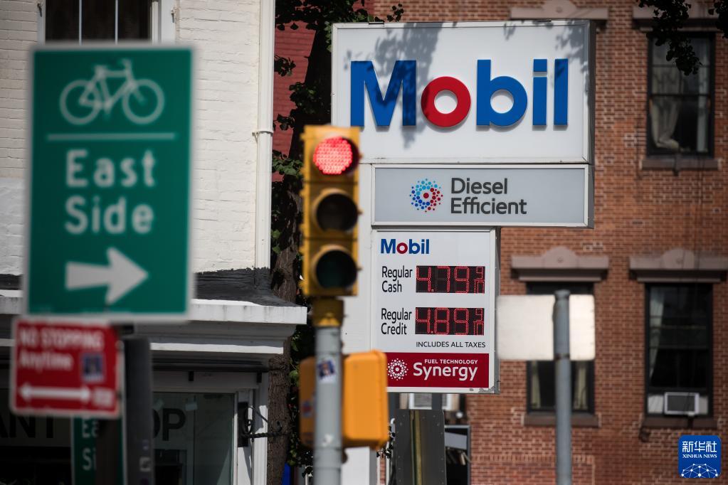 這是9月13日在美國(guó)紐約一家加油站拍攝的油價(jià)顯示屏。