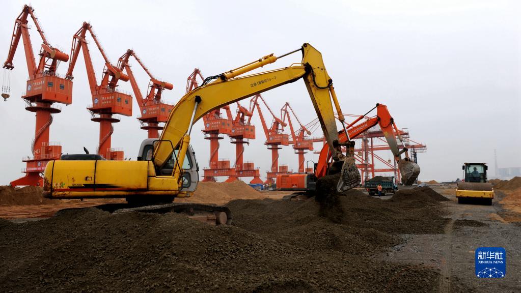 建設中的欽州港碼頭(2009年8月8日攝)。