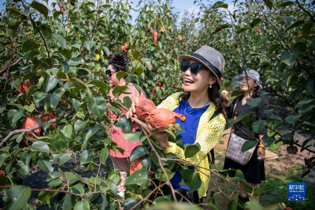9月14日,游客在修善村的果園里采摘。
