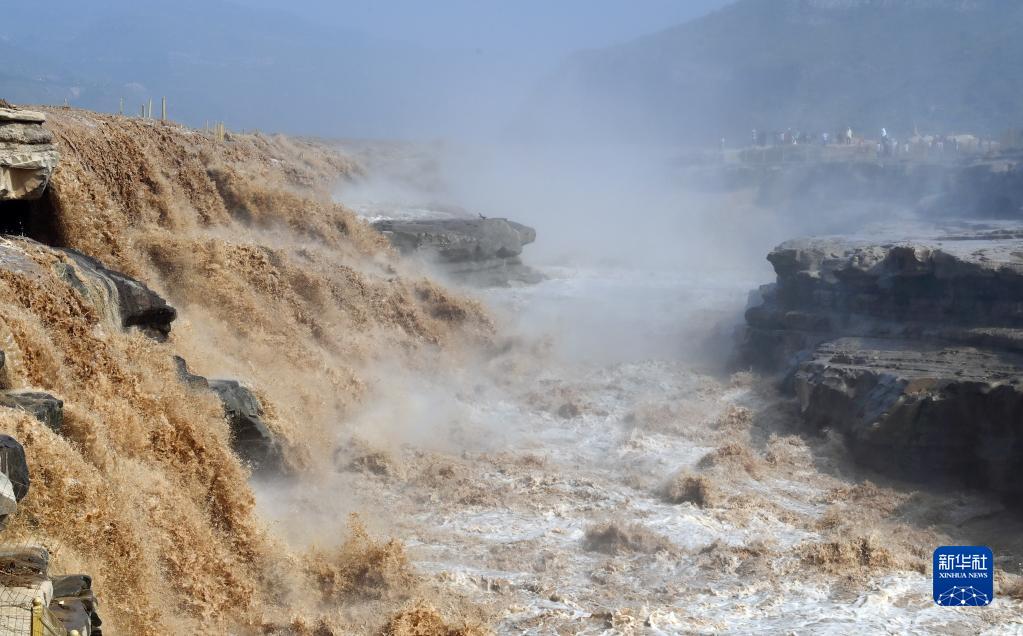 近日,秦晉交界的黃河壺口瀑布水量大增,形成綿延數百米的壯美瀑布群。