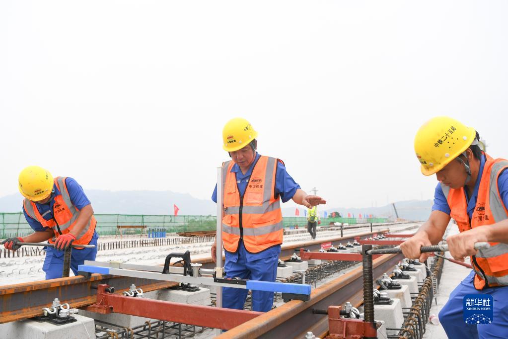 9月15日,施工人員在重慶軌道交通18號線軌道工程一標段作業。