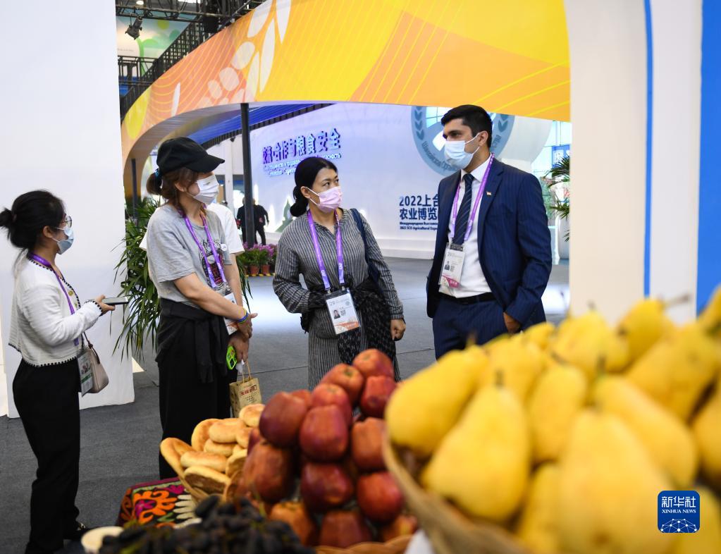 9月15日,參觀者在塔吉克斯坦展區了解特色水果。