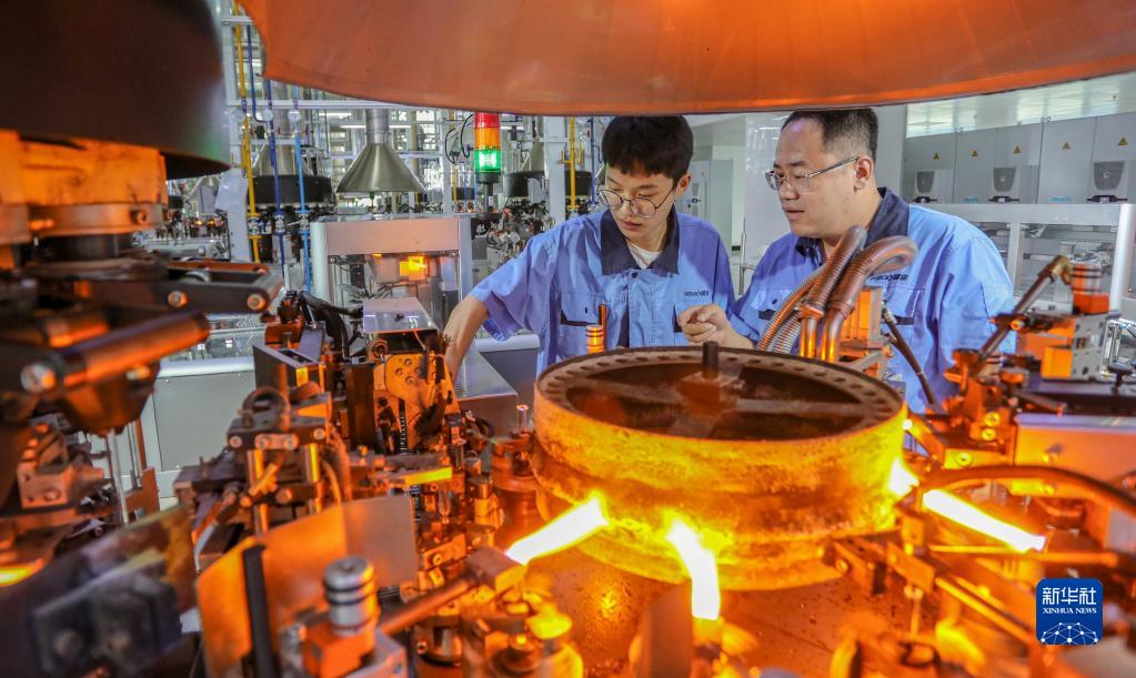 9月15日,威高集團(tuán)預(yù)灌封生產(chǎn)車間主任蘭明昌(右)指導(dǎo)“訂單班”學(xué)員王常發(fā)檢驗生產(chǎn)設(shè)備。