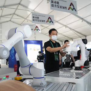 9月15日,在2022年全國大眾創業萬眾創新活動周合肥主會場的主題展區,來自深圳的越疆科技有限公司參展商展示其公司研發的智能協作機械臂。